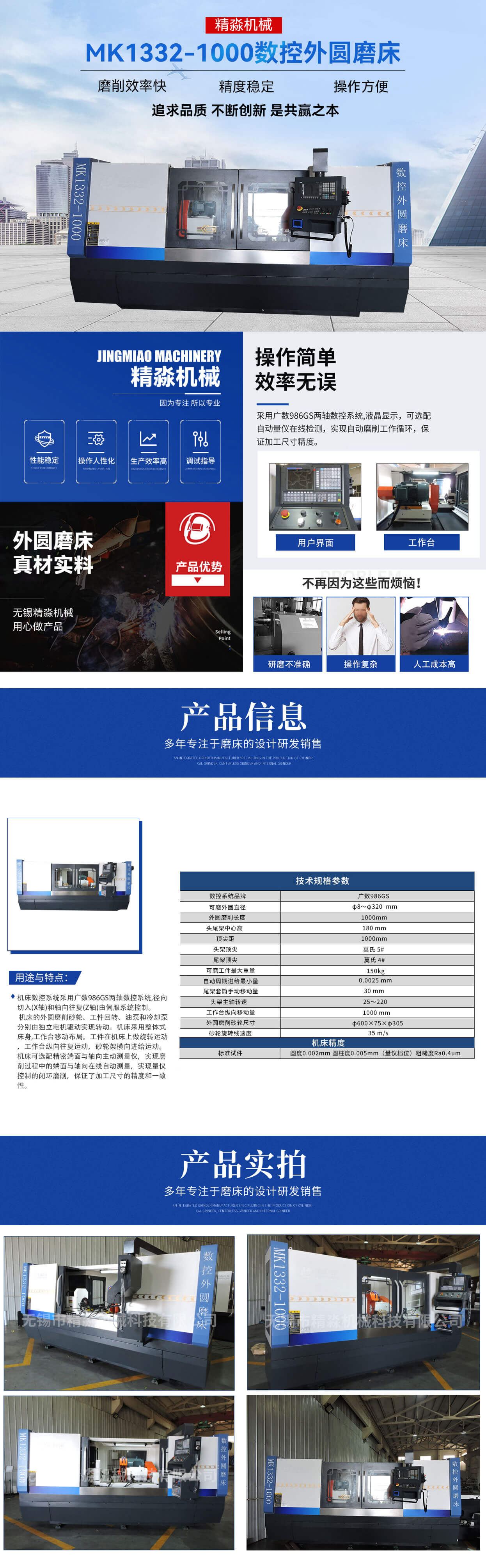 歡迎您訪問無(wú)錫市精淼機(jī)械科技有限公司官網(wǎng)!本公司主要產(chǎn)品有:磨床,外圓磨床,萬(wàn)能外圓磨床,數(shù)控外圓磨床,數(shù)控端面外圓磨床,數(shù)控復(fù)合磨床,專機(jī)定制,高精度外圓磨床 !